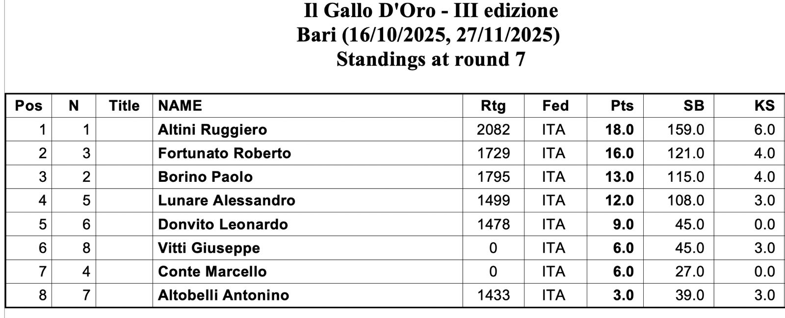 Nikcevic Nebojsa vince l'XIII Torneo Nazionale di Scacchi Pro Loco Gioia del Colle. Al secondo posto si classifica Ruggiero Altini e al terzo Fabio Angelo Pellizzieri.