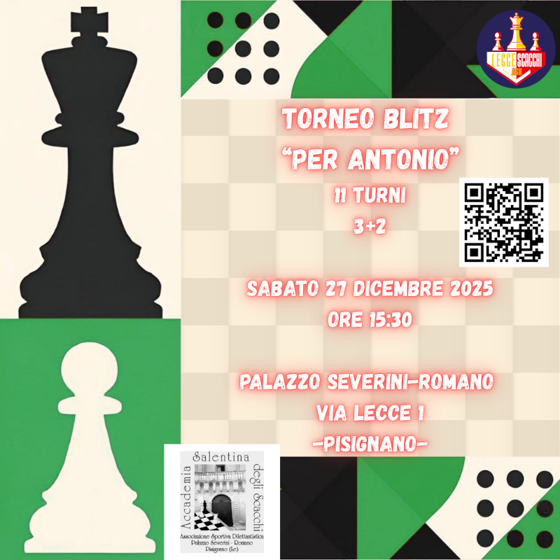 IN EVIDENZA: Torneo blitz "Per Antonio" - 27/12/25 Pisignano